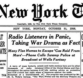 우주전쟁 오손웰스 Orson Wells 오손 웰스(Orson Wells, 1915~1985)의 전설이라면, 라디오 드라마 '우주전쟁'이라 할 수 있다.1938년 오손웰스의 나이 23살, CBS 라디오 단막극 시리즈에서 허버트 조지웰스의 원작 '우주전쟁'(The War of the Worlds)’을 준비했다. 오손 웰스가 직접 제작 감독하고 내레이터로 출연했다.시공간적인 배경을 원작의 19세기 영국에서 20세기 미국 뉴저지 웨스트 윈저에 존재하는 실제 지명으로 각색했다.차이코프스키 피아노 콘체르토 작품 1번이 흐르는 가운데 아나운서가 드라마의 배경을 설명한 뒤 웰스를 소개했고, 배역들의 대사 연기도 순조롭게 이어졌다. 중간에 진행자의 안내 멘트도 삽입됐다. “여러분은 지금 H.G 웰스의 ‘우주 전쟁’을 각색한 오손 웰스의 드라마를 듣고 계십니다.. 더보기 이전 1 ··· 1002 1003 1004 1005 1006 1007 1008 ··· 2002 다음