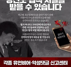 유언비어 유포 법적 처벌 유언비어 악성댓글 및 카톡 퍼트리기 법적 처벌 어르신들에게 오는 카톡이나, 근거없이 확산되는 내용에 대해 제동이 걸릴 수 있겠다.더불어민주당이 유언비어 유포에 대해 신고를 받을 수 있는 곳을 마련했다.아울러 박근혜 대통령과 최순실 게이트에 대한 신고도 받고 있다. 새누리당에서 받는 신고 사이트는 아직 없는 듯 하다. 이하, 더불어민주당 유언비어 유포 포스터에서 발췌박근혜 - 최순실 게이트를 물타기 하려고 더불어민주당과 대선후보들에 대한 유언비어가 유포되고 있습니다.별거 아니라고 SNS상에 퍼나르거나 주변 지인들에게 전달하는 순간 당신도 법적 처벌 대상이 됩니다. 유언비어 및 악성 댓글 신고센터 http://유언비어신고.kr 더보기 이전 1 ··· 1351 1352 1353 1354 1355 1356 1357 ··· 2002 다음