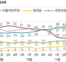 정당 지지율 12월 16일자 정당 지지도 한국갤럽에서 조사한 12월 3주, 12월 16일자 정당 지지도가 나왔다.창조정부 이후 처음으로 더불어민주당의 지지율이 40%에 올라섰다.박근혜 대통령의 탄핵 후폭풍이 이는 모습이다. 정당 지지율의 흐름을 보면, - 새누리당 : 탄핵 이후 분열을 보이며 지지율 2% 상승,15% - 더불어민주당 : 박근혜 정부 이후 처음으로 40% 지지율 달성 - 국민의당 : 12월 3일 탄핵발의 여파 이후 지속 하락 - 정의당 출처 : 한국갤럽(http://www.gallup.co.kr/) 더보기 이전 1 ··· 1384 1385 1386 1387 1388 1389 1390 ··· 2002 다음