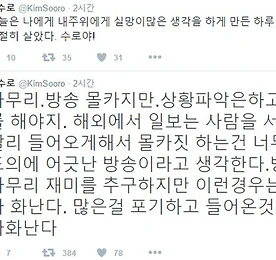 김수로 몰래카메라 김수로 몰래카메라 해외에서 활동중이다 중요한 일도 아닌 몰카로 귀국하면 화날만 하다. 그외, 김수로도 '학교다녀오겠습니다'에서 산이를 몰래카메라로 당황하게한 사실이 있다. http://tenasia.hankyung.com/archives/523193 아직 방송은 나가지 않았고, 12월 10일에 방송될 몰래카메라 프로그램이라고 한다. 네티즌 추정으로는 일밤 은밀하게 위대하게라는데. 물론 노이즈 마케팅으로 시청률에 불을 붙이려는 의도도 있어 보인다. 방송가에서 하는 일이 사전 대본 없이 이렇게까지 진행될 수 있을까. 더구나 해외에 있는 사람을 사전협의 없이 불러들였다는건데. 진짜면 무개념 제작진이고, 사전 협의가 됐다면 방송가다운 고스톱이다. 동 시간대 방송인 1박2일 15.9%, 일밤 은밀하게 위대하게 설.. 더보기 이전 1 ··· 1418 1419 1420 1421 1422 1423 1424 ··· 2002 다음