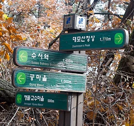 수서 대모산 청설모 수서역 대모산 등산 대모산은 수서역에서 출발 일원역 쪽으로 내려오는 코스를 선호한다.다시 수서역까지 돌아오는데 걸리는 시간은 약 3시간수서역 대모산에서 양재 구룡산까지 코스는 대략 5시간 소모된다.몇 번 타봤는데 힘들다.그냥 만만한 수서-일원 코스가 좋다.큰 오르막은 3개 정도있는데 쉬엄쉬엄 올라도 각 10분이면 다 오를만한 길이다. 가을을 느껴볼 수도 있고, 청솔모도 보고정상에 오르면 탄천과 종합운동장도 잘 보인다.나름 야경도 멋지다. 일원역으로 가는 방향에는 불국사가 있다.조그만 절, 경주 불국사와는 틀리다.물 마셔도 되고, 잠시 쉬어가도 되는 곳. 일원역 불국사 2014.10.23 | 지도 크게 보기 © NAVER Corp. 수서역 대모산 ~ 일원역 대모산 코스 2014.10.23 | 지도 크게 보.. 더보기 이전 1 ··· 1538 1539 1540 1541 1542 1543 1544 ··· 2002 다음