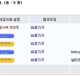 블로그(티스토리) 개인 도메인 연결 티스토리(블로그) 개인 도메인 연결하기 티스토리에서 2차 도메인(개인 도메인)연결하다 삽질해서 약 3일째 외부에서 진입이 안되고 있다.월요일 출근해서 보니 티스토리 안들어가서 알게 됐다.한참 방문자 순증하던 시기였는데 안타깝다. 삽질기의 원인기존 쓰던 DNSEVER가 불안정한 느낌이 있어서 현재 도메인을 이용중인 HOSTWAY DNS도 변경하려고 했다.그런데 호스트 IP를 안옮기는 바람에 블로그가 먹통되며 붕 떠버렸다.안까먹으려고 이 글을 작성... 1. 개인 도메인 준비(이건 알아서...) 2. 도메인 관리 페이지로 진입 후 연결할 도메인과 호스트 IP 입력 DNSERVER(https://kr.dnsever.com)를 예로 .. 더보기 이전 1 ··· 1770 1771 1772 1773 1774 1775 1776 ··· 2002 다음