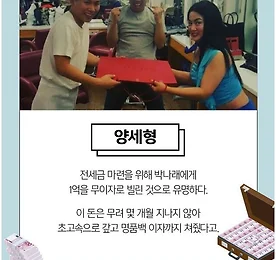 연예인 걱정은 사치다!? 연예인 걱정은 사치다!? 물론 인지도 있고 자기만의 컨텐츠가 있는 연예인에 한정되겠지만. 김형석, 결혼 전 20억의 빚을 2년여 만에 청산윤정수, 2013년 파산으로 30억의 빚. 님과함께로 컴백에 서옹하고 대부분의 채무 변제이상민, 70억 정도의 채무. 음악의신으로 주가 상승하며 대부분의 빚 변제양세형, 박나래에게 1억원을 빌렸고 몇 달 되지 않아 원금에 이자까지 지불김구라, 아내의 17억 빚 대부분 정리되었을 것신동엽, 사업실패로 80억 가량의 빚, 유명프로를 맡으면서 대부분 변제 더보기 이전 1 ··· 653 654 655 656 657 658 659 ··· 2002 다음