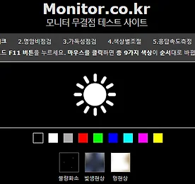 무결점테스트 불량화소 명암비 응답속도 검사 테스트 모니터 무결점 테스트, 모니터 테스트를 할 수 있는 서비스가 있다. - 불량화소 체크 - 명암비 점검 - 가독성 점검 - 색상별 조절 - 응답속도 측정 - 감마점검 # 모니터 물결점 테스트 http://www.monitor.co.kr/ 1. 사용방법은 아주 간단하고 쉽습니다.2. 브라우저의 "보기 - 도구 모음 - 상태 표시줄" 에서 상태 표시줄 체크를 꺼주세요.3. 총 검정/하얀/회색/빨강/초록/파랑/하늘/핑크/노랑의 9가지 색으로 점검을 합니다.4. 키보드 F11 버튼을 누르면, 검정색부터 시작하여 전체화면으로 나옵니다.5. 전체화면에서 위의 샘플그림 같은 불량화소가 있는지 찾아보세요.6. 마우스를 클릭하면 색이 바뀝니다. 다른 색에서도 불량화소를 찾아보세요.7. 다시 한번 키보드 F11 버튼을 누르.. 더보기 이전 1 ··· 829 830 831 832 833 834 835 ··· 2002 다음